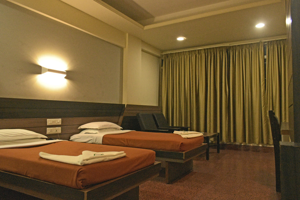 Royal AC Room comparatively spacious than Non-A/c rooms with the attached private bathroom having Showered, LCD TV, leaving room with Satellite network, Telephone, running Hot & Cold Water and